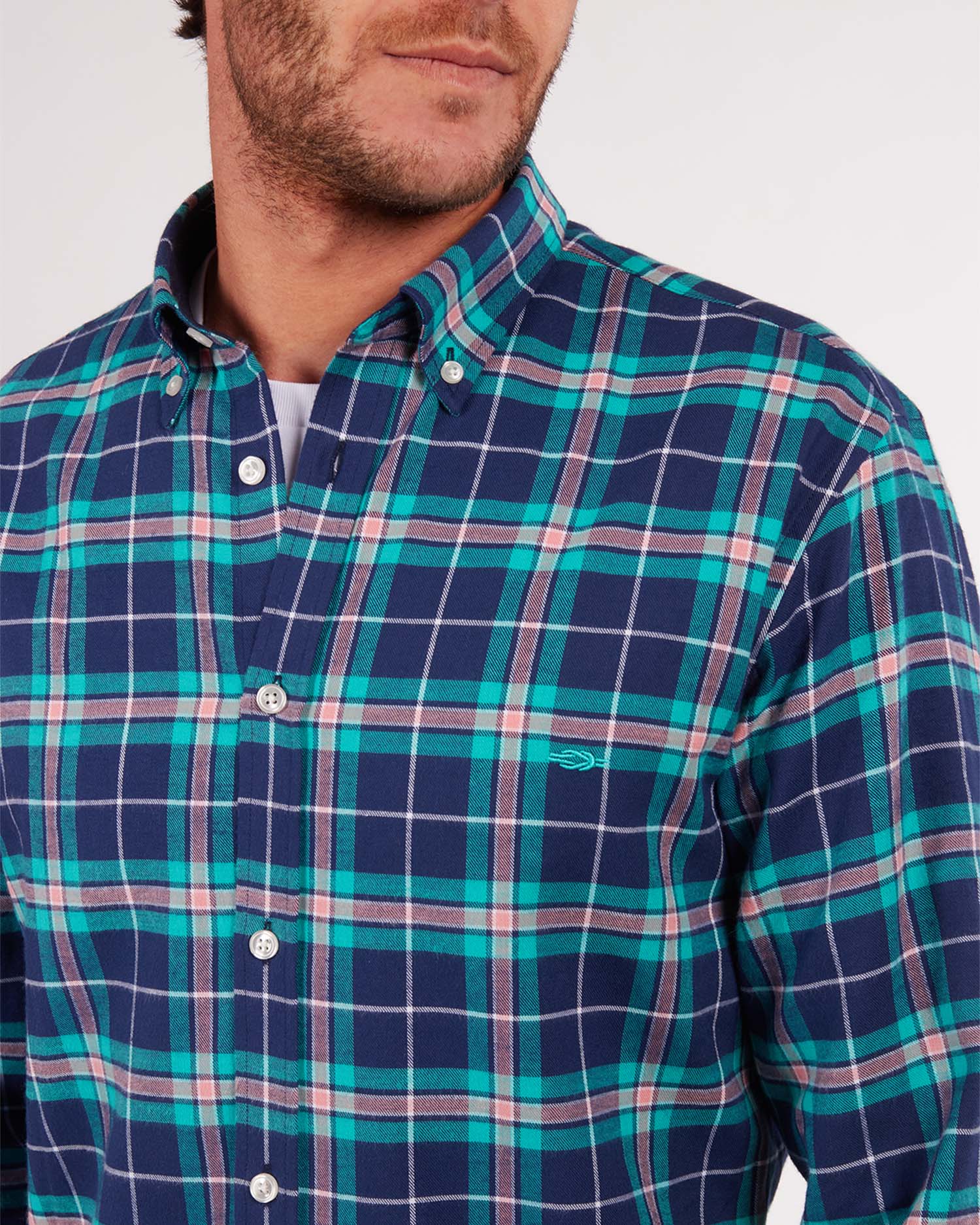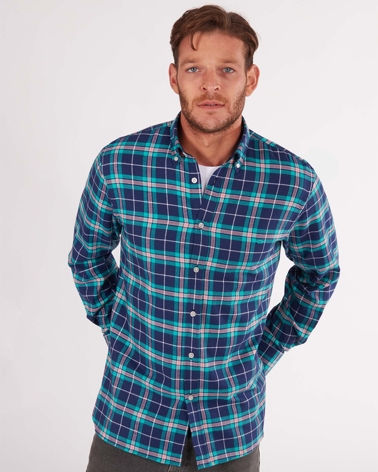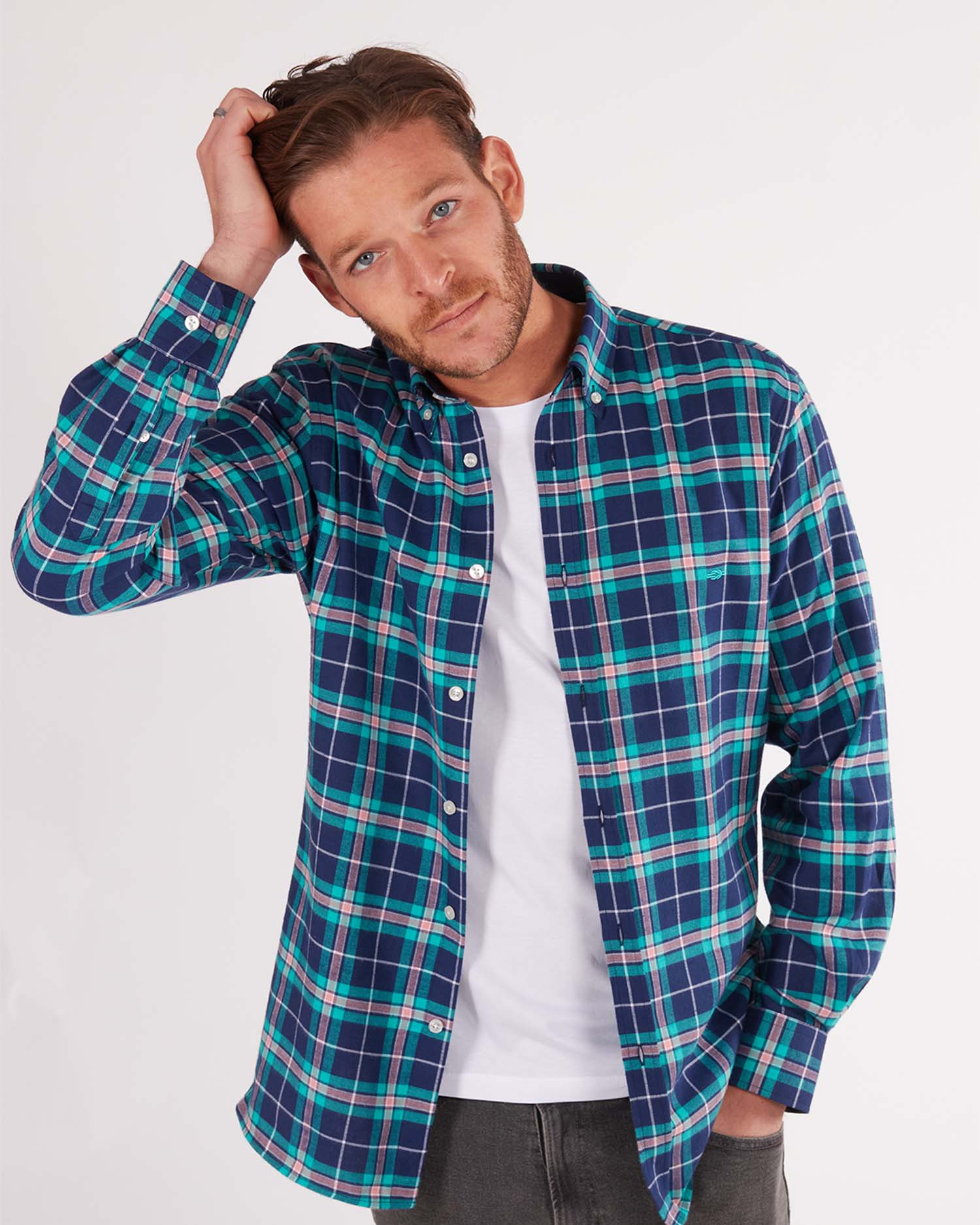 A classic button-down with modern touches, including contrasting colours in the collar and cuff lining for a refined look. Additional embroidered details on the chest and lower button placket make this a real classic with a Reef Knots twist.