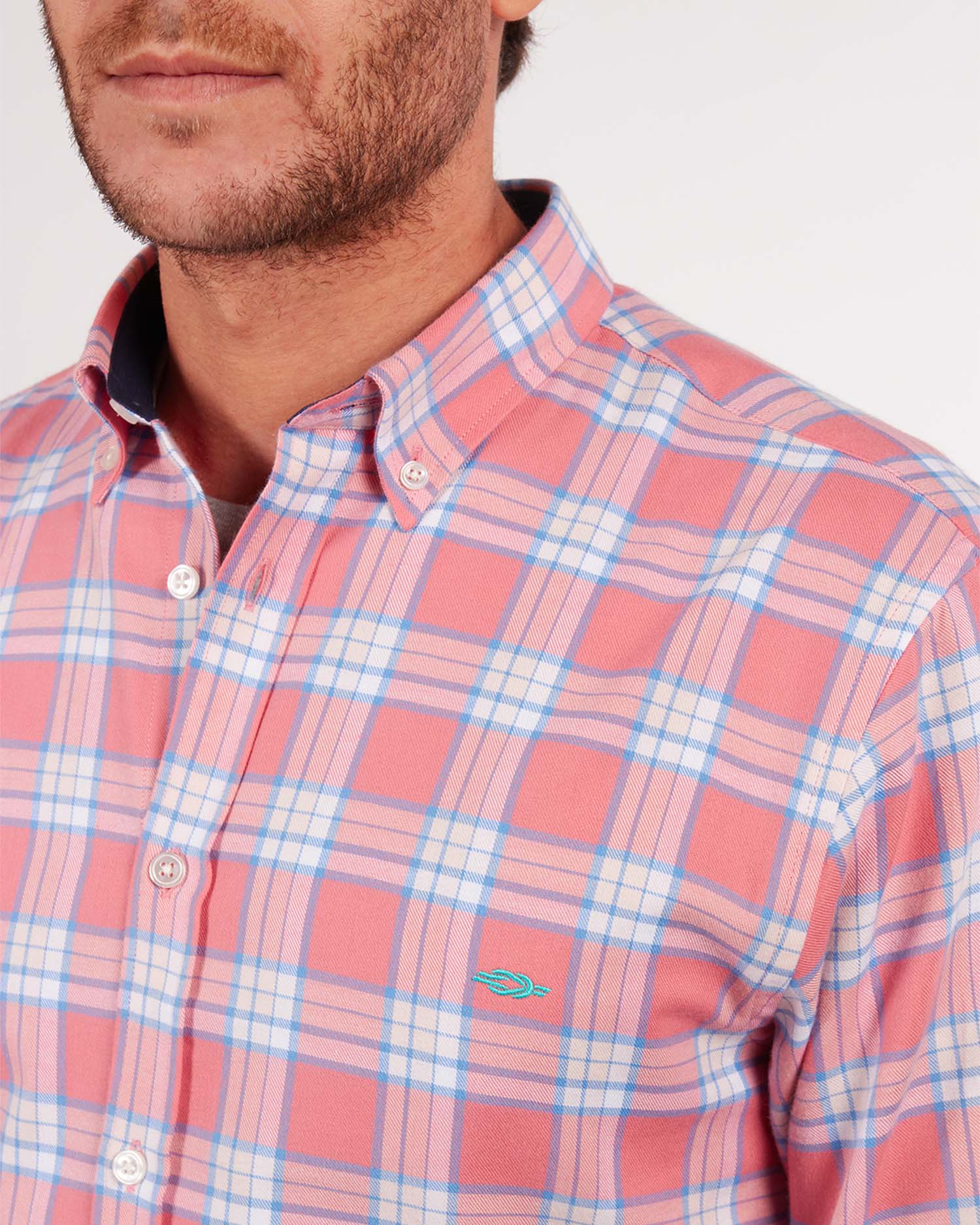 A classic button-down with modern touches, including contrasting colours in the collar and cuff lining for a refined look. Additional embroidered details on the chest and lower button placket make this a real classic with a Reef Knots twist.