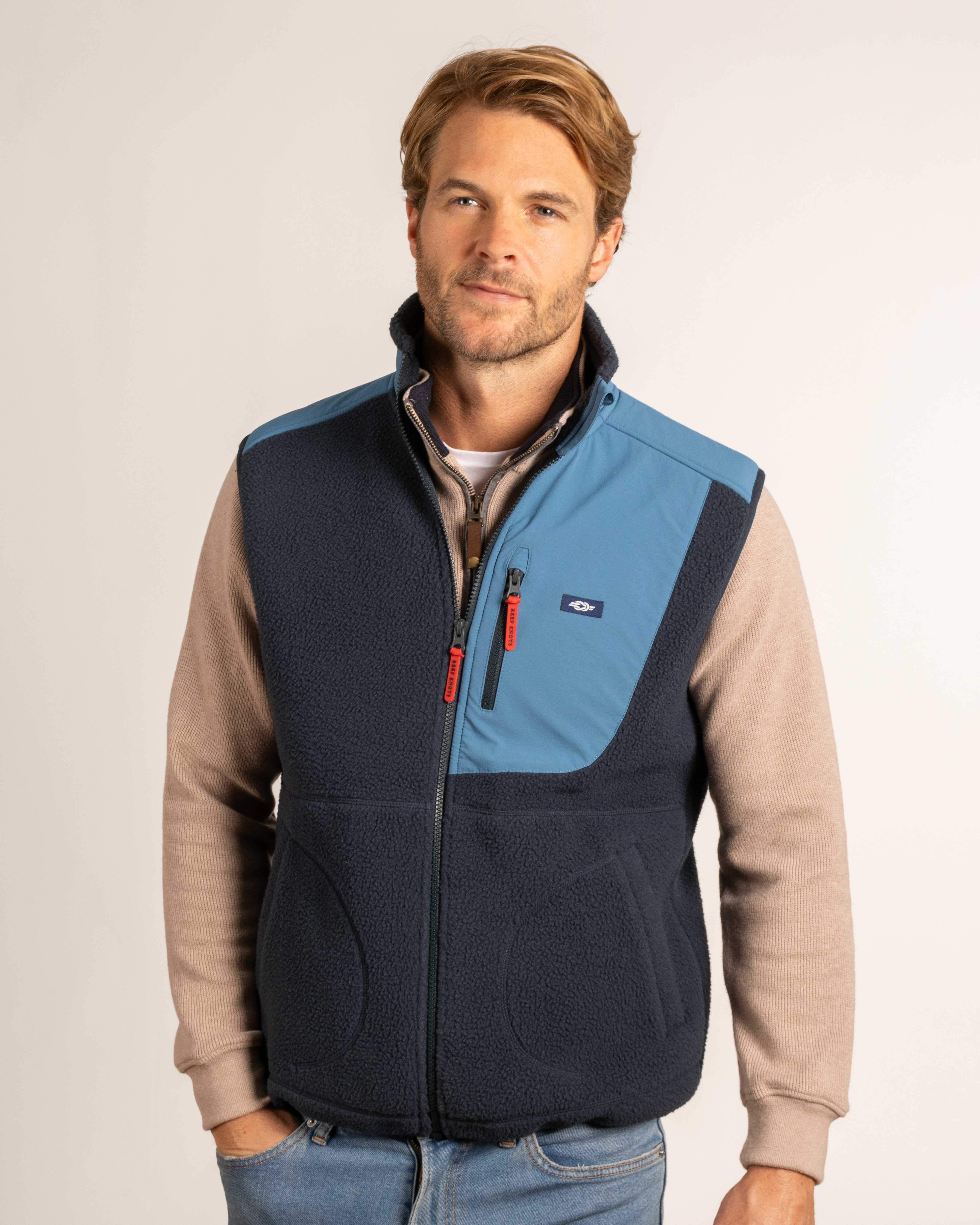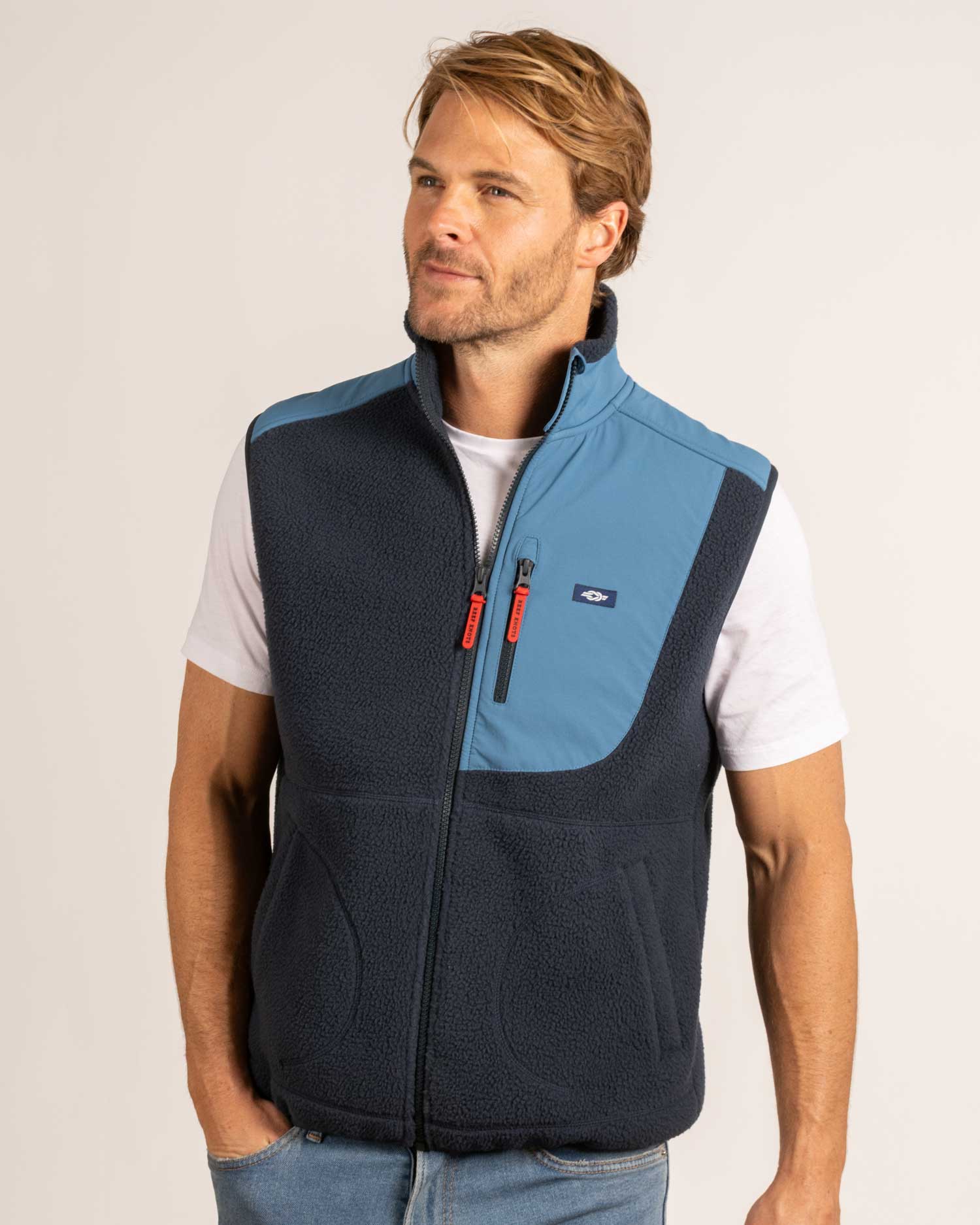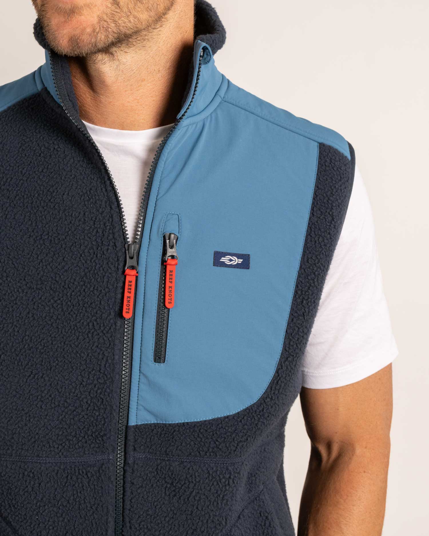 The Reef Knots Recycled Navy and Blue Fleece Gilet combines sustainable design, warmth, and versatility in one stylish layer. Made from 100% recycled polyester, this eco-friendly fleece gilet for men is built to keep you comfortable whether you’re out on a weekend walk, layering up for coastal adventures, or enjoying relaxed evenings outdoors. The cosy brushed interior delivers all-day comfort, while the classic fit makes it easy to wear over shirts, knitwear, or under a jacket. With its bold navy and blue colour-block design, this sustainable fleece gilet is both practical and stylish, making it a dependable go-to for everyday wear.