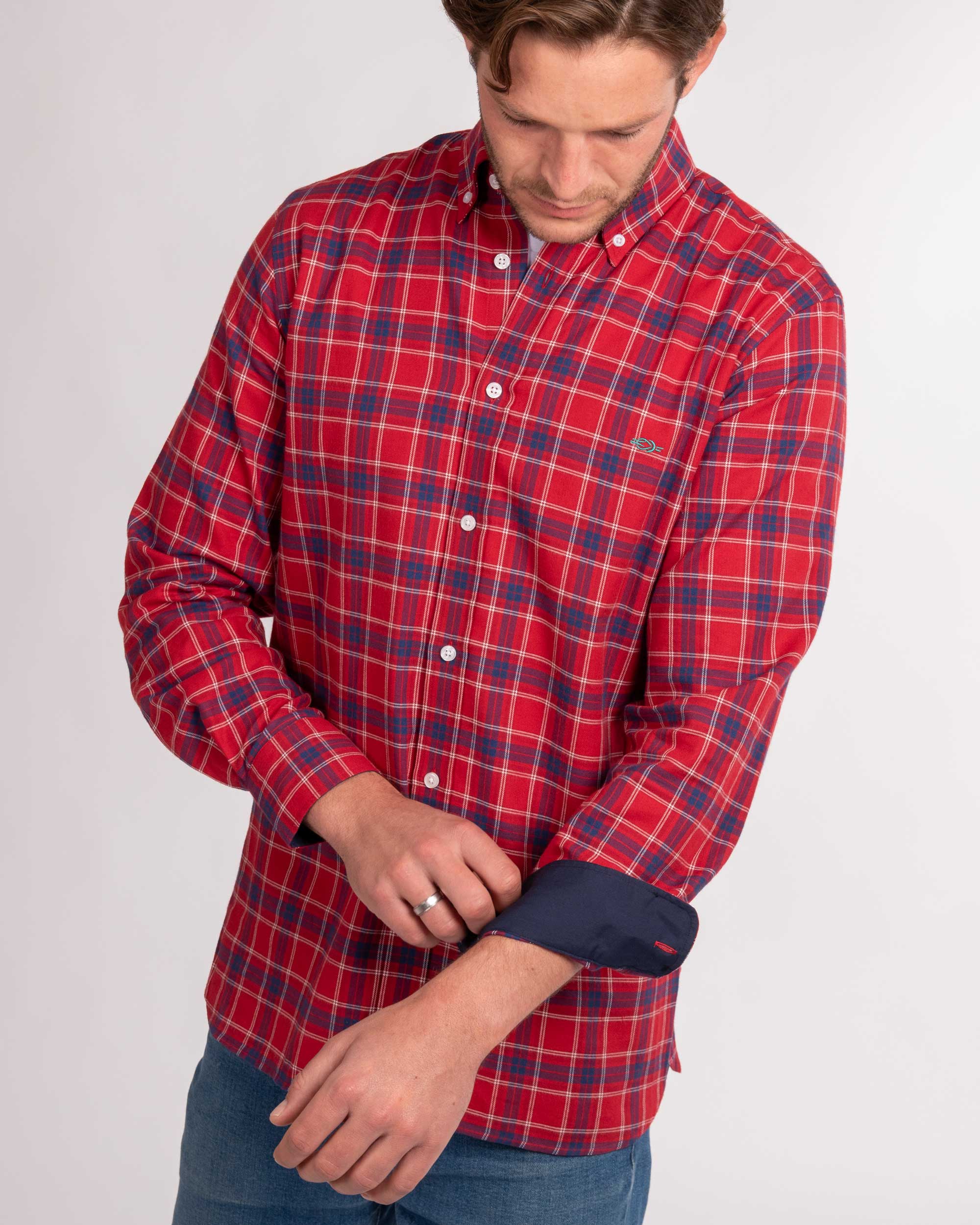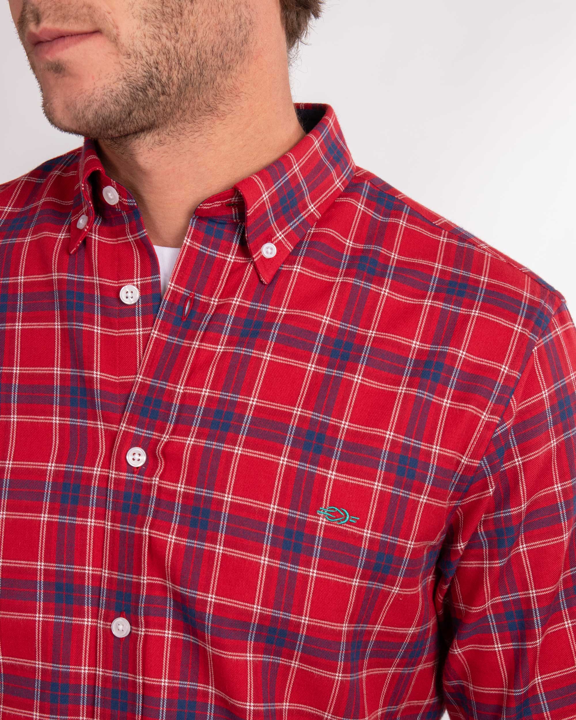 A classic button-down with modern touches, including contrasting colours in the collar and cuff lining for a refined look. Additional embroidered details on the chest and lower button placket make this a real classic with a Reef Knots twist.