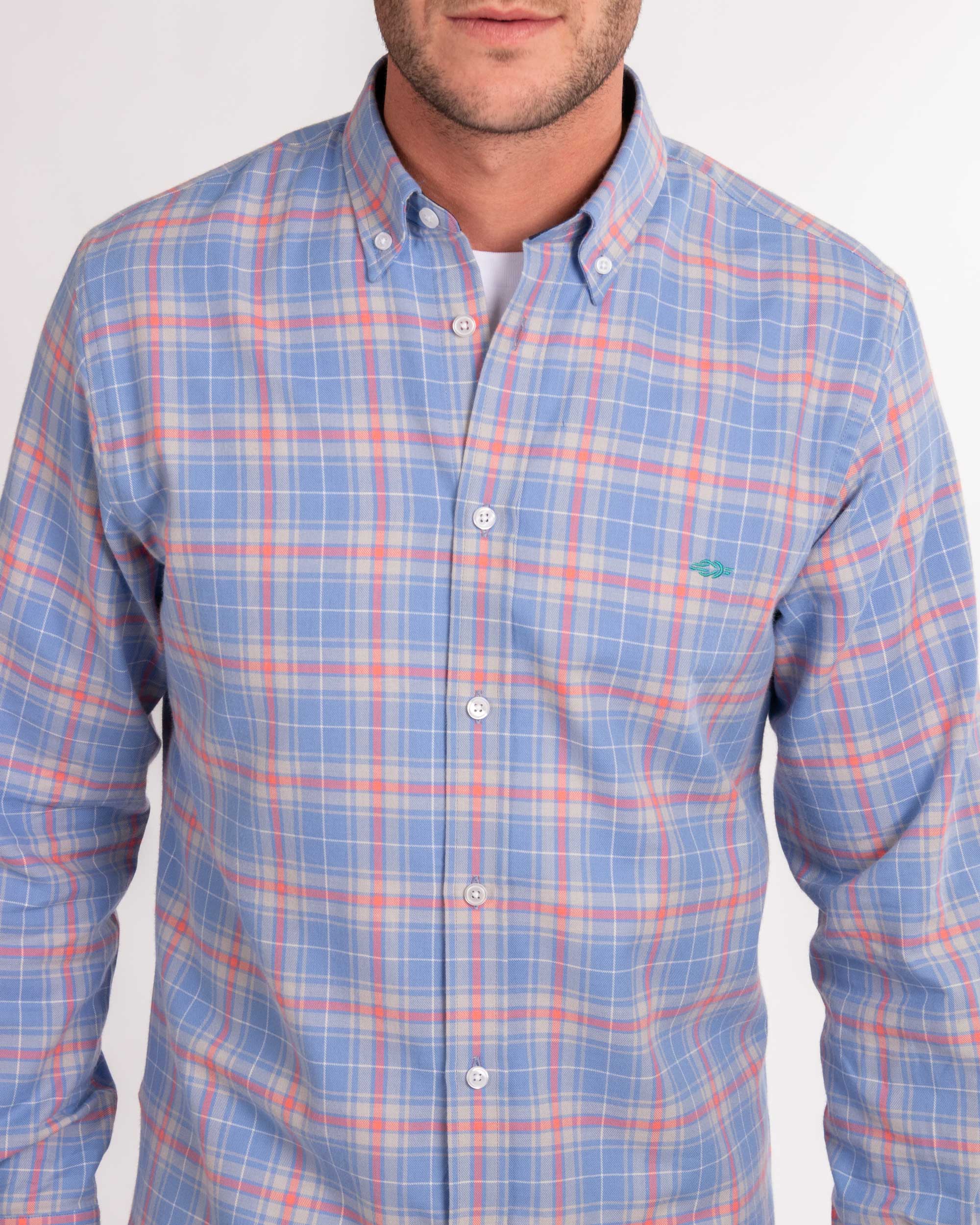 A classic button-down with modern touches, including contrasting colours in the collar and cuff lining for a refined look. Additional embroidered details on the chest and lower button placket make this a real classic with a Reef Knots twist.