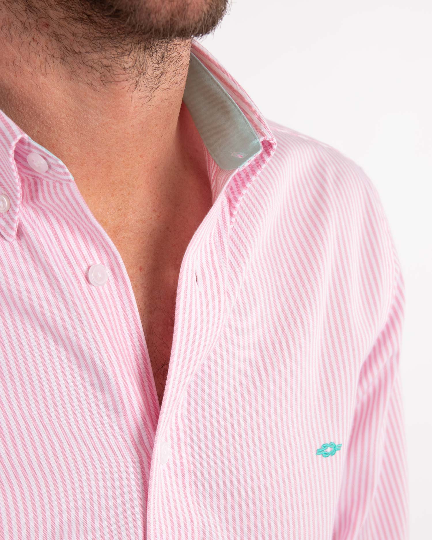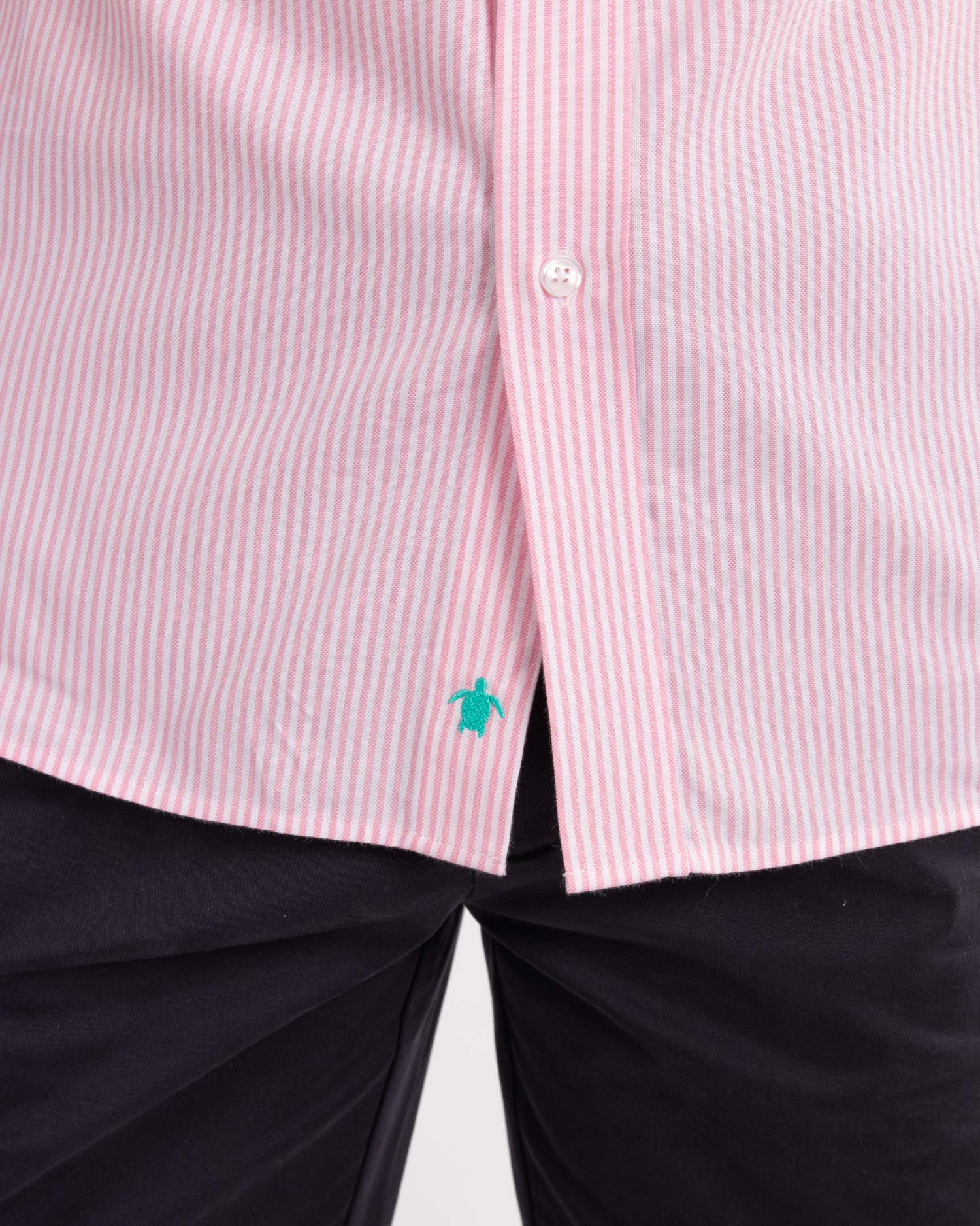 A satisfyingly weighted Oxford cotton with aqua inside collar and cuff trims and turtle print detailing. This will be a staple for seasons to come.