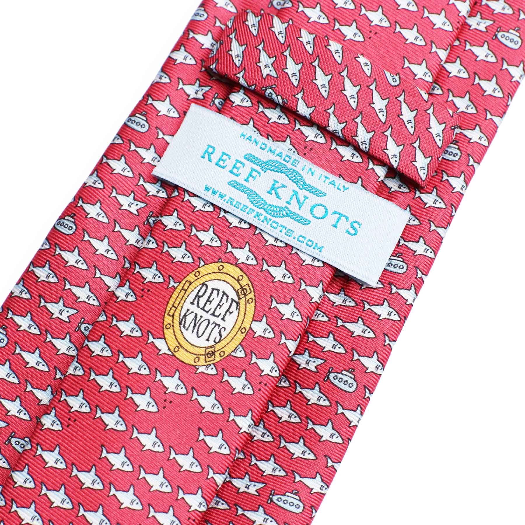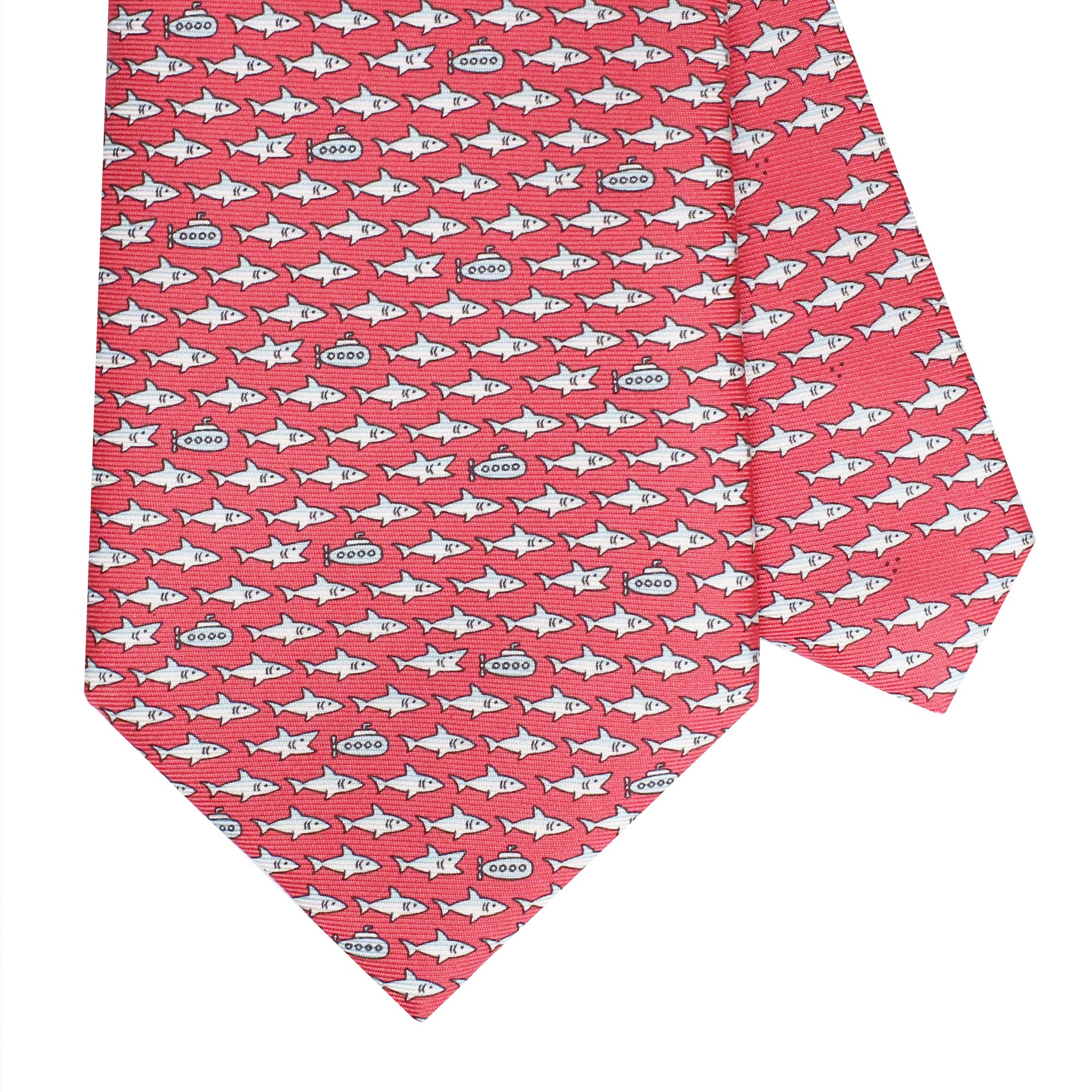 Take a bite out of our shark and submarine silk tie. Featuring a snappy shark and submarine print on the blade and a subtle change on the tail. A smart but characterful design. The perfect tie for all occasions including the office, a set of wedding ties, or a fantastic mens gift.