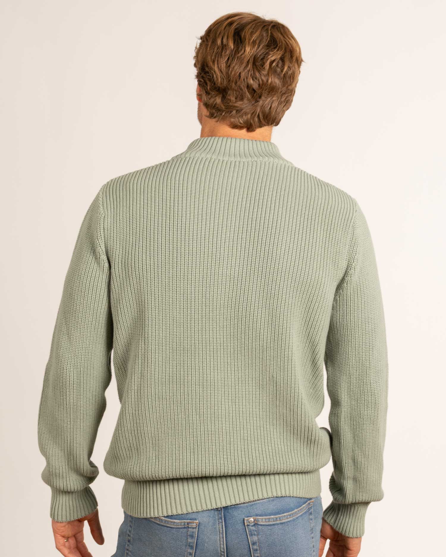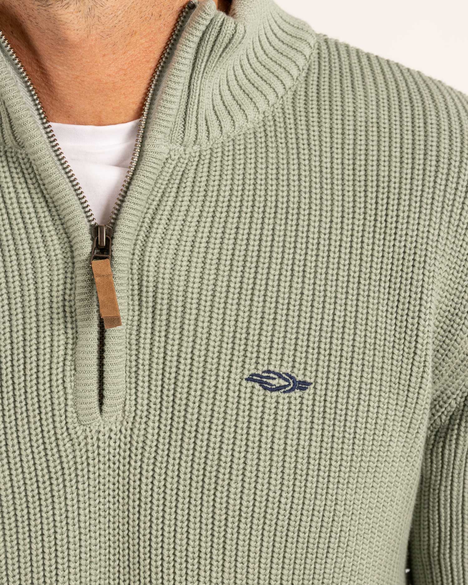 Elevate your cold-weather wardrobe with our Burford chunky knit half zip in Sage. Crafted from a luxuriously soft blend cotton, this thick knitted piece offers warmth and comfort. Featuring a classic ribbed cuffs and hem, the a classic understated piece that has snugness at it's core.