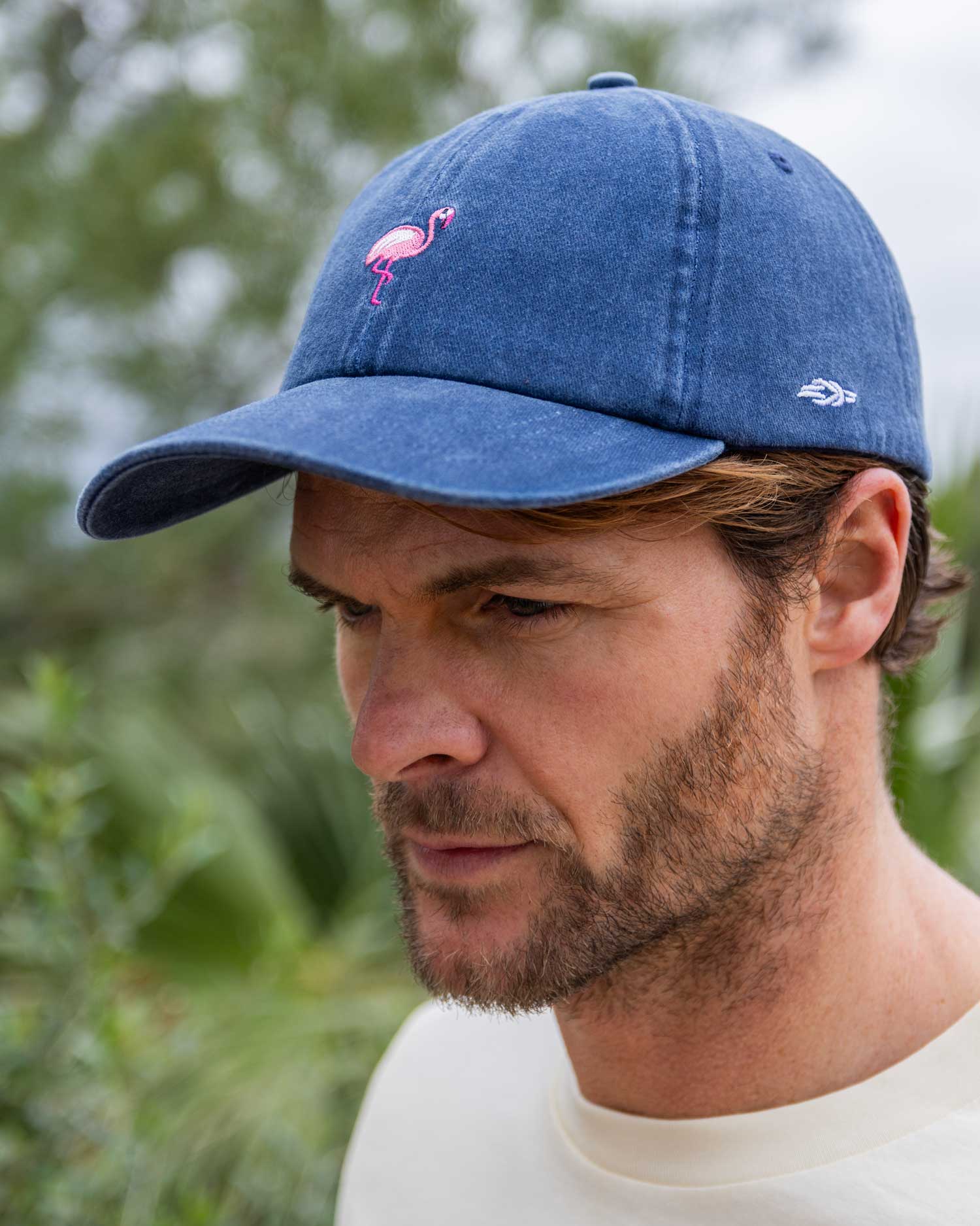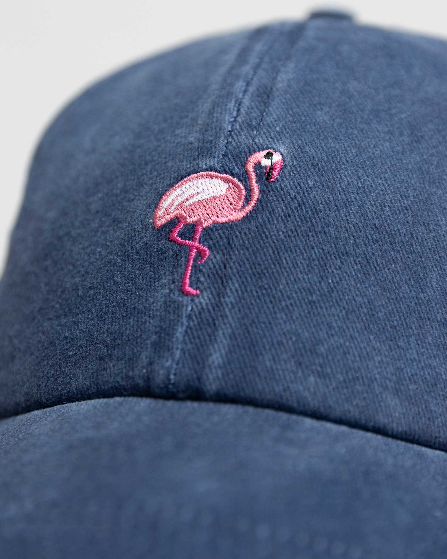 Our navy blue flamingo cap has the feeling of an old friend sun-baked into it. We've done the hard work so you can stride out into the world looking like a salty sea-dog that has spent the last few months circumnavigating the globe on the deck of a beautiful yacht.