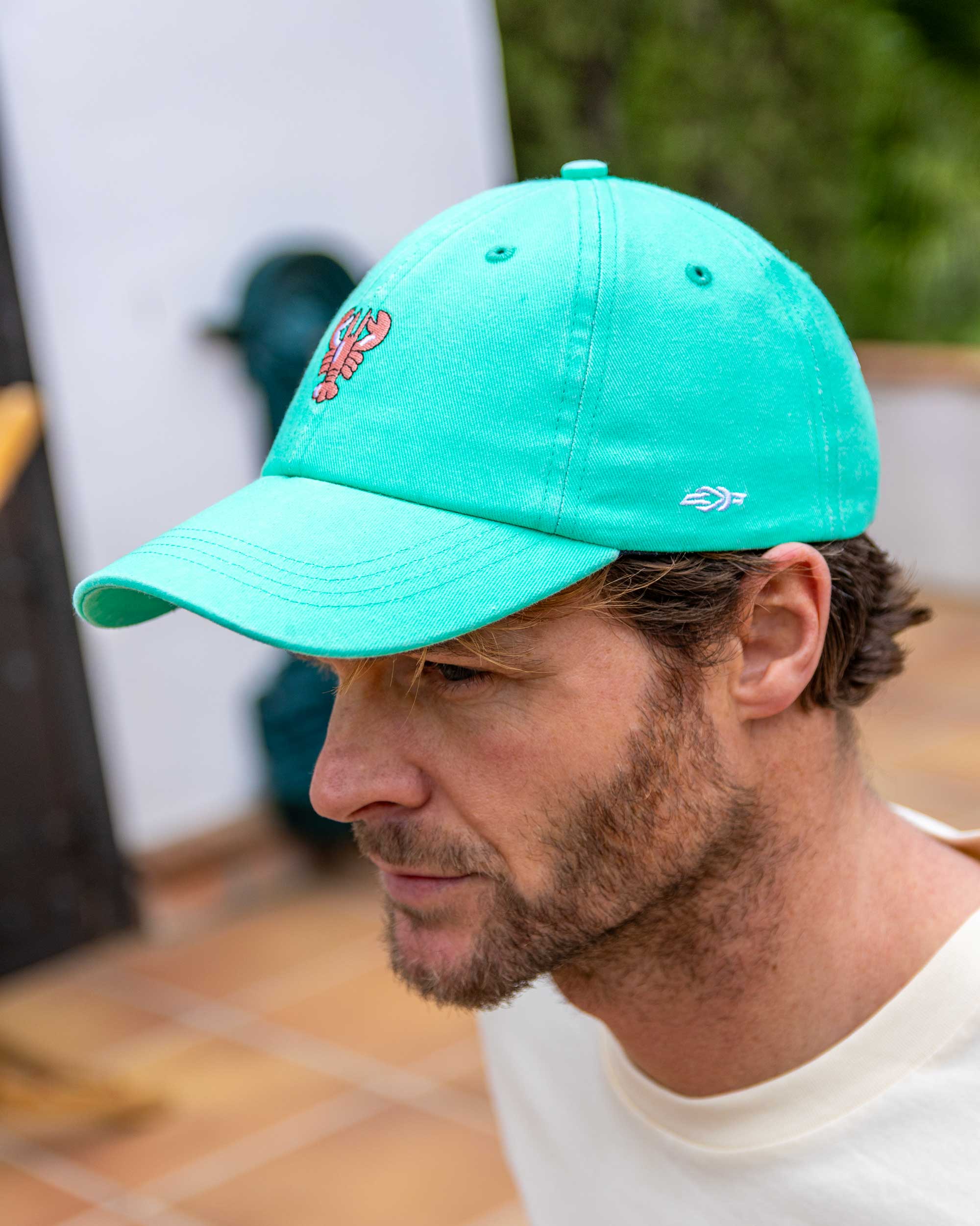 Our aqua lobster cap has the feeling of an old friend sun-baked into it. We've done the hard work so you can stride out into the world looking like a salty sea-dog that has spent the last few months circumnavigating the globe on the deck of a beautiful yacht.