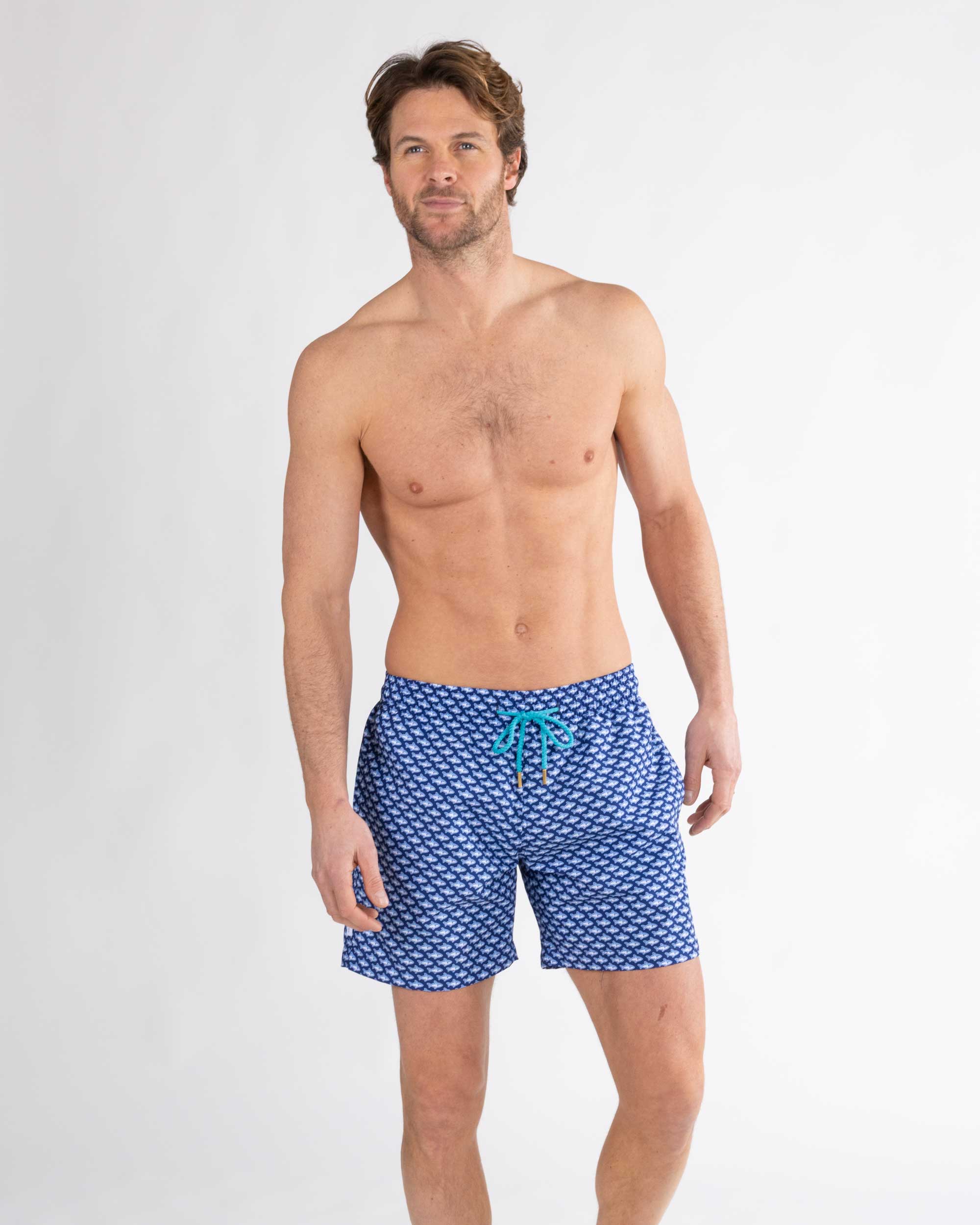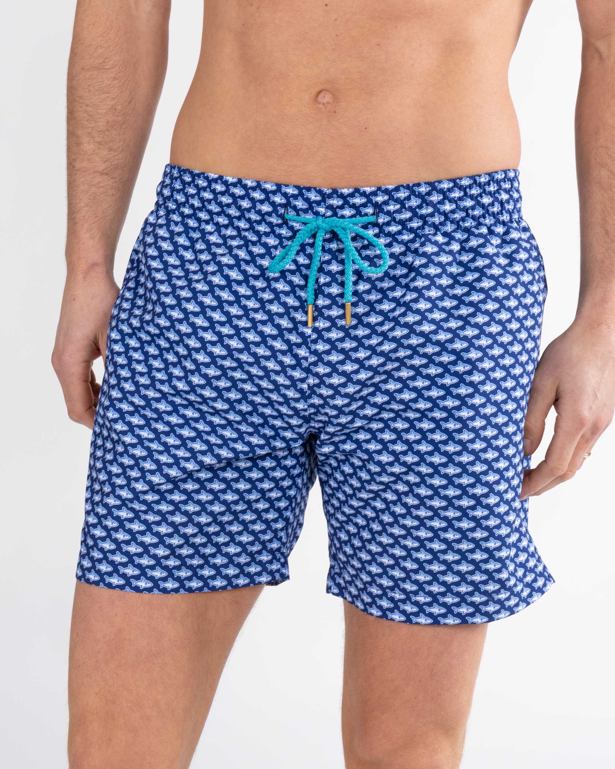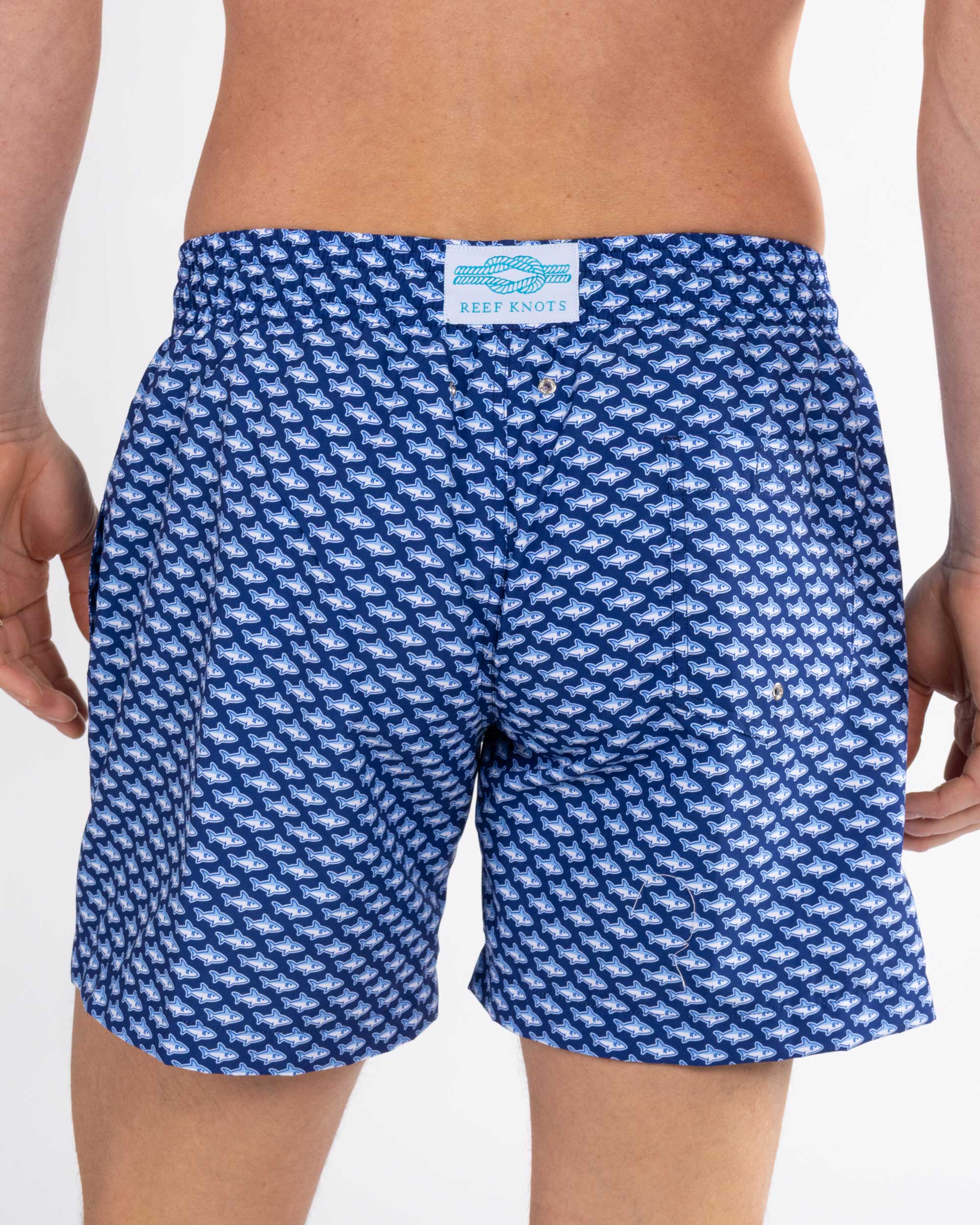 Navy Shark Print Classic Swim Shorts