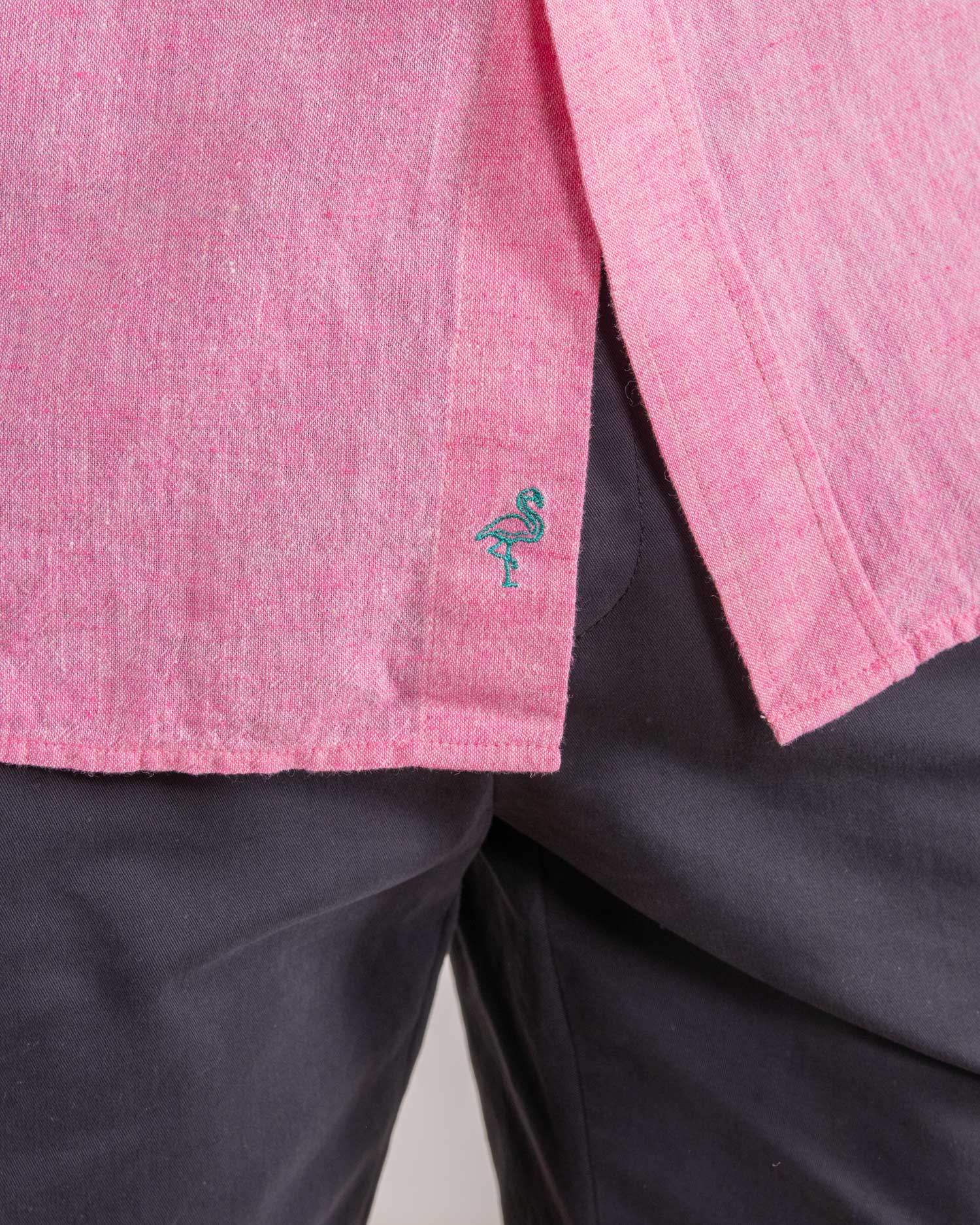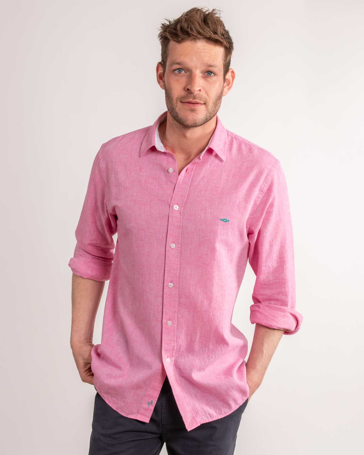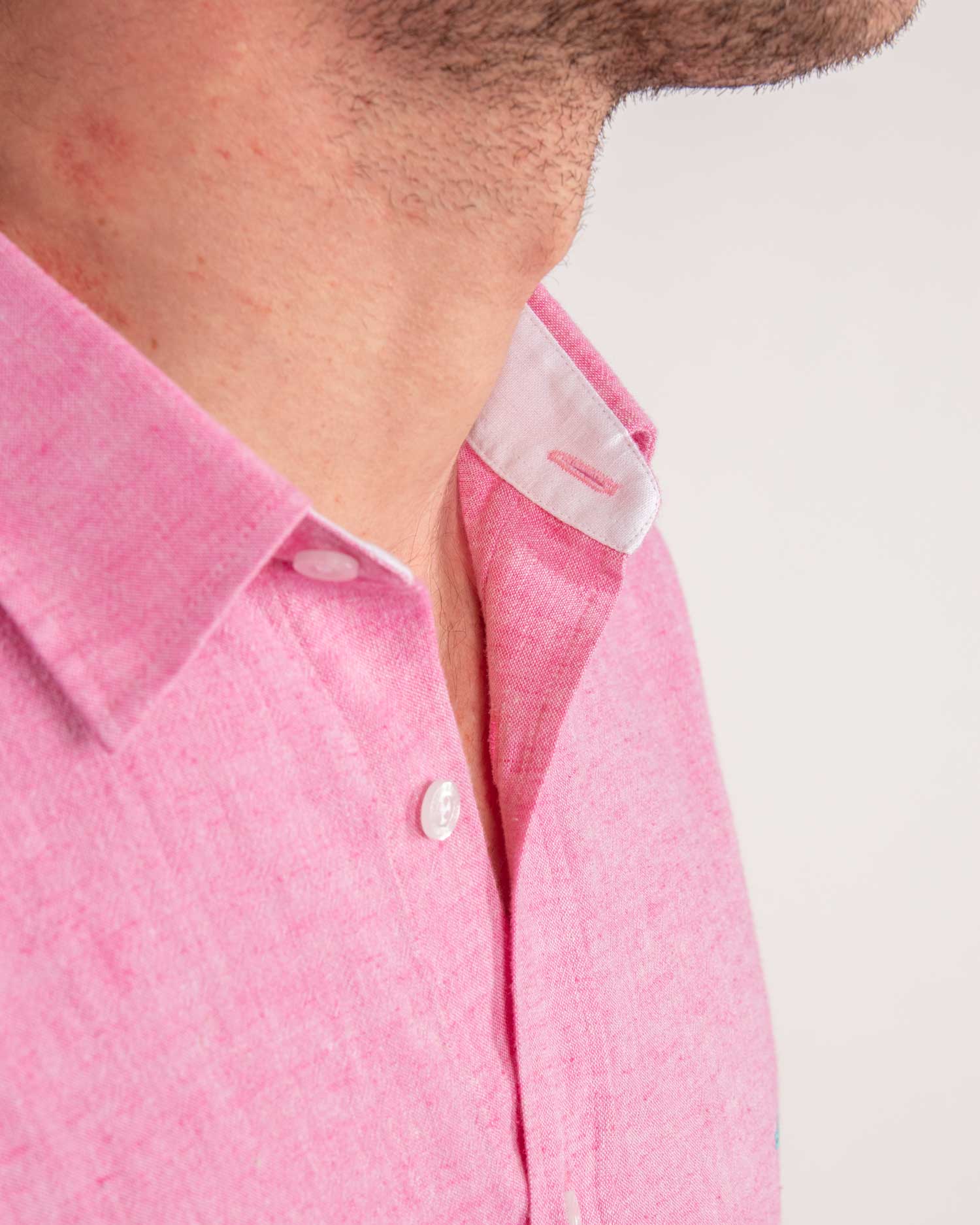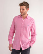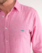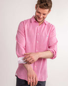 Dark pink linen shirt by Reef Knots.