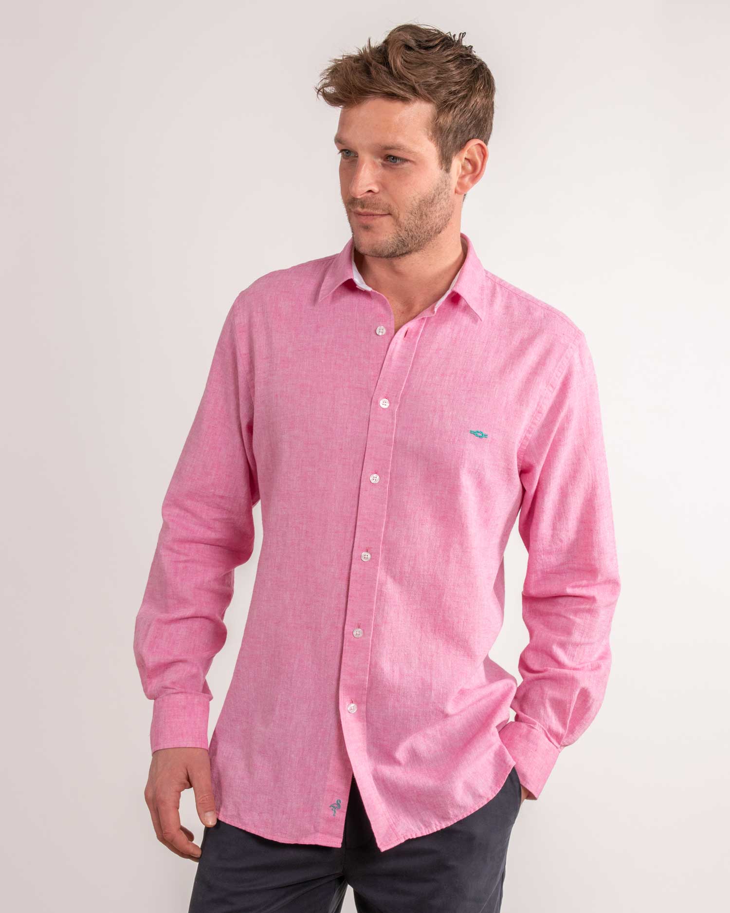 To make our linen shirts as comfortable as possible, we've blended ours with cotton to produce a summer staple that's soft to the touch and cool to the core. (27% linen/73% cotton)