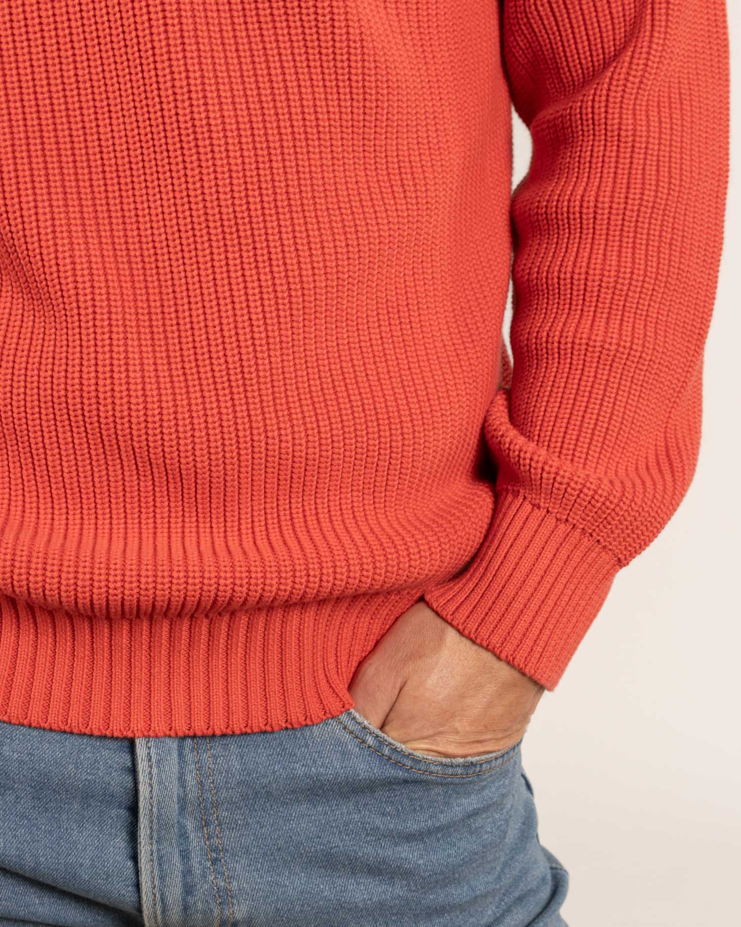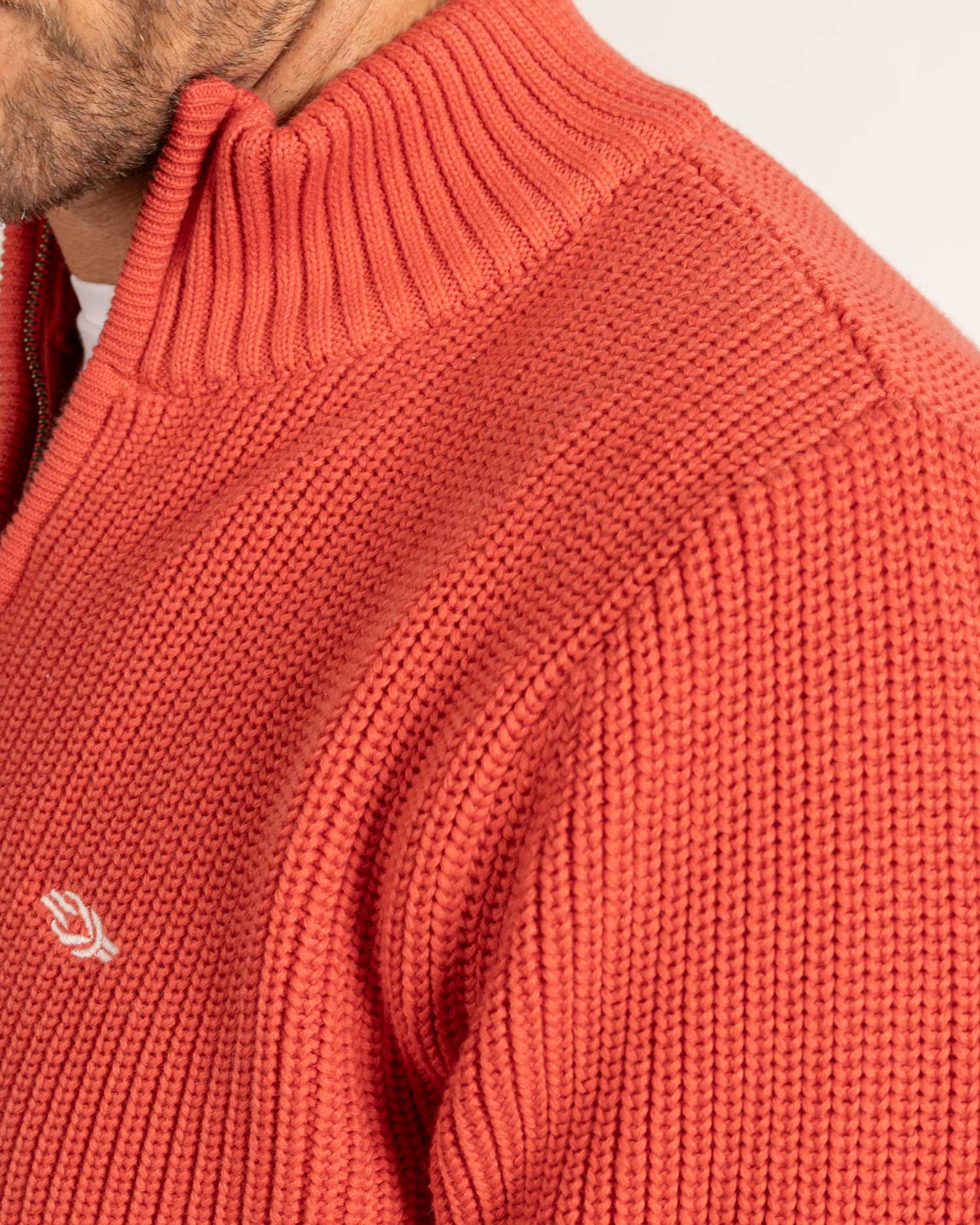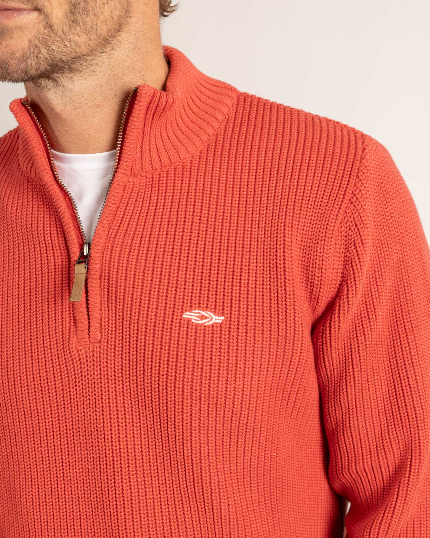 Elevate your cold-weather wardrobe with our Burford chunky knit half zip in Terracotta. Crafted from a luxuriously soft blend cotton, this thick knitted piece offers warmth and comfort. Featuring a classic ribbed cuffs and hem, the a classic understated piece that has snugness at it's core.