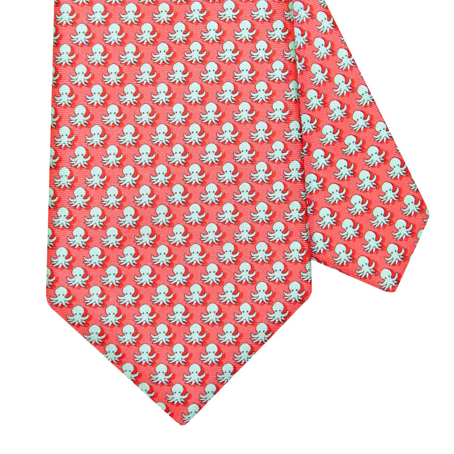 This red octopus tie is handmade in Italy and screen-printed on the finest quality silk. This tie makes a perfect addition to any wardrobe.